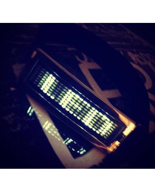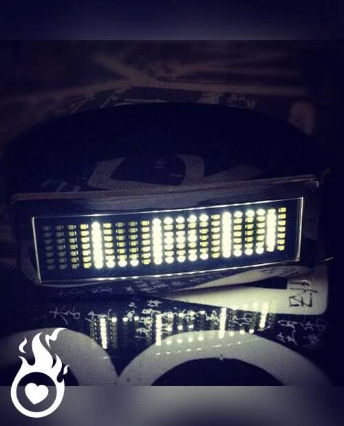 De multiples passionnés de la marque de vêtements Heart JacKing l’ont déjà adopté… Ce ceinturon cuir a une boucle led intégrée, sur laquelle vos phrases se visualisent. Les lumières des ceintures résistent grandement aux chocs, elles ont une luminosité qui peut être vue même au soleil (pas juste lorsqu’il fait noir).