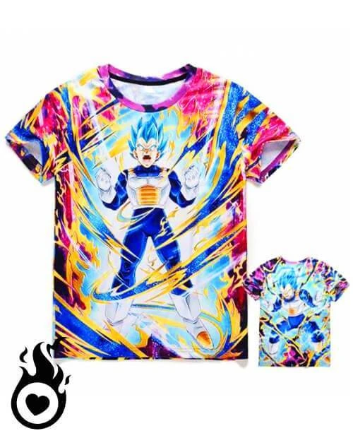 Ce t-shirt Végéta SSJGSSJ (« super sayajin god super sayajin », qui correspod à la forme de Vegeta lorsqu’il est en transformation de dieu aux cheveux bleus) est impossible à trouver ailleurs, et pourtant proposé au meilleur prix et pour toutes les tailles sur notre site.